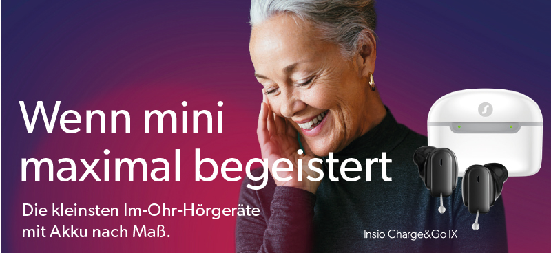 Wir laden Sie ganz herzlich ein: Lernen Sie Insio Charge&Go CIC IX von Signia kennen, und tragen Sie diese winzigen Miniatur-Wunderwerke 14 Tage zur Probe – natürlich kostenlos und unverbindlich!