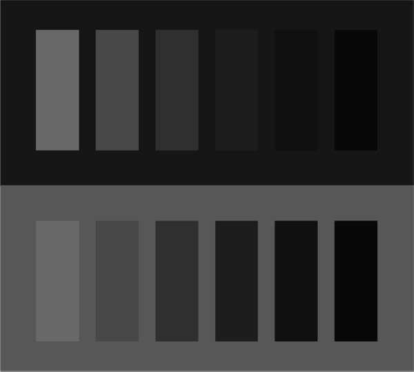 Eine der bekanntesten Farbillusionen ist der Crisping Effekt. Hierbei wird der wahrgenommene Farbunterschied zweier Farben durch ähnliche Hintergründe verstärkt. Vergleicht man zwei Farben auf kontraststarkem Hintergrund miteinander, sind Unterschiede kaum wahrzunehmen. Betrachtet man diese Farben allerdings vor einem Hintergrund derselben Farbfamilie, sind die Unterschiede deutlich zu erkennen.