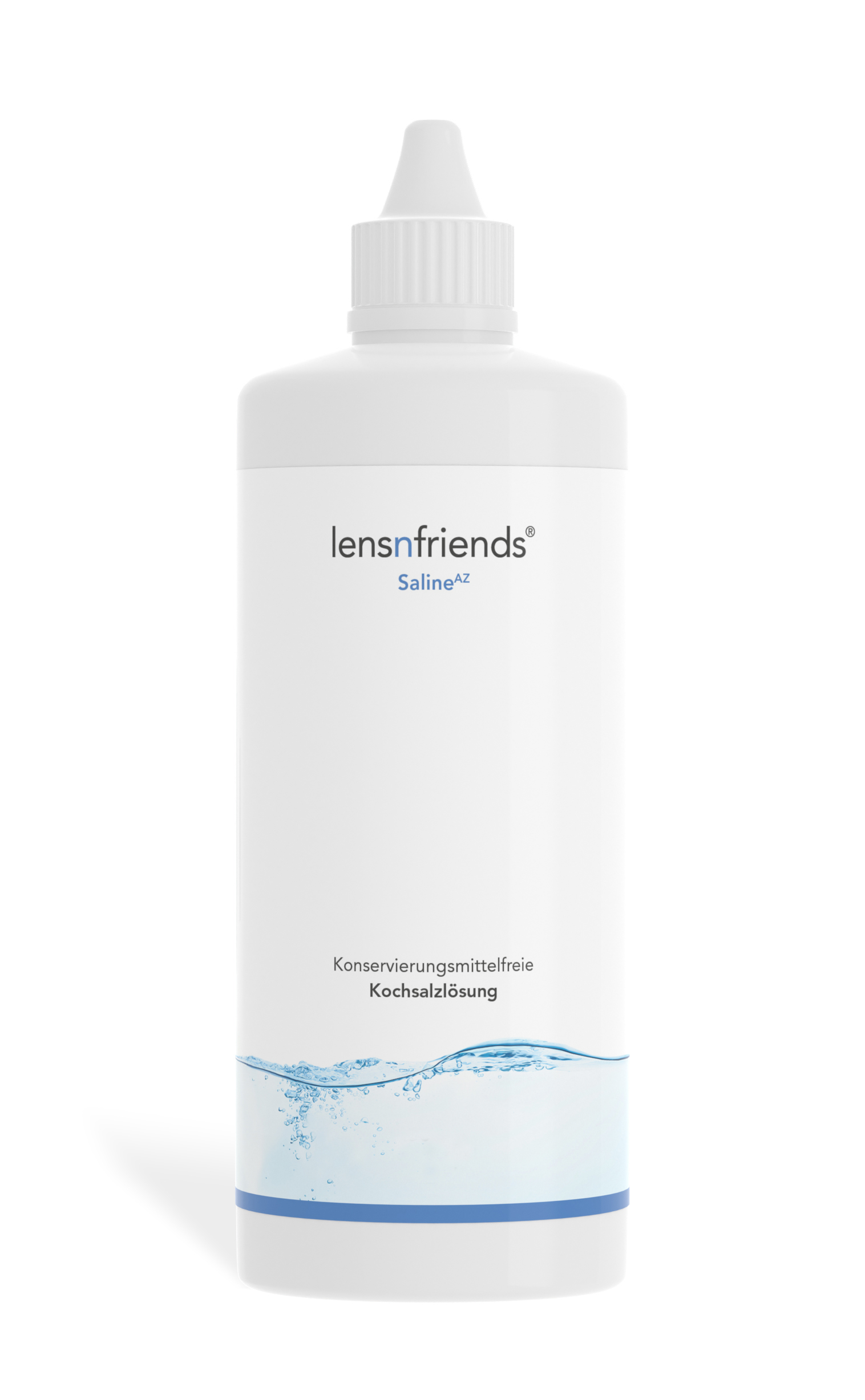 Die lensnfriends Saline AZ Kochsalzlösung ist eine sterile, pH-neutrale, isotonische Lösung – für alle Kontaktlinsen geeignet.